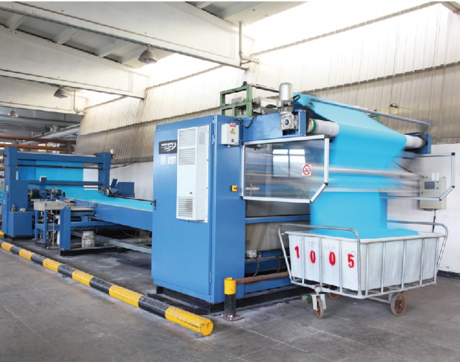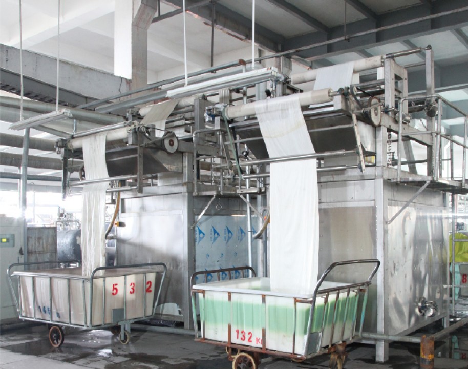 主要印染加工各類全棉、T/R、T/C及棉裘系列各種印花染色產品,有韓國進口定型機6臺、長車軋染線3條、配套前道蒸漂絲光